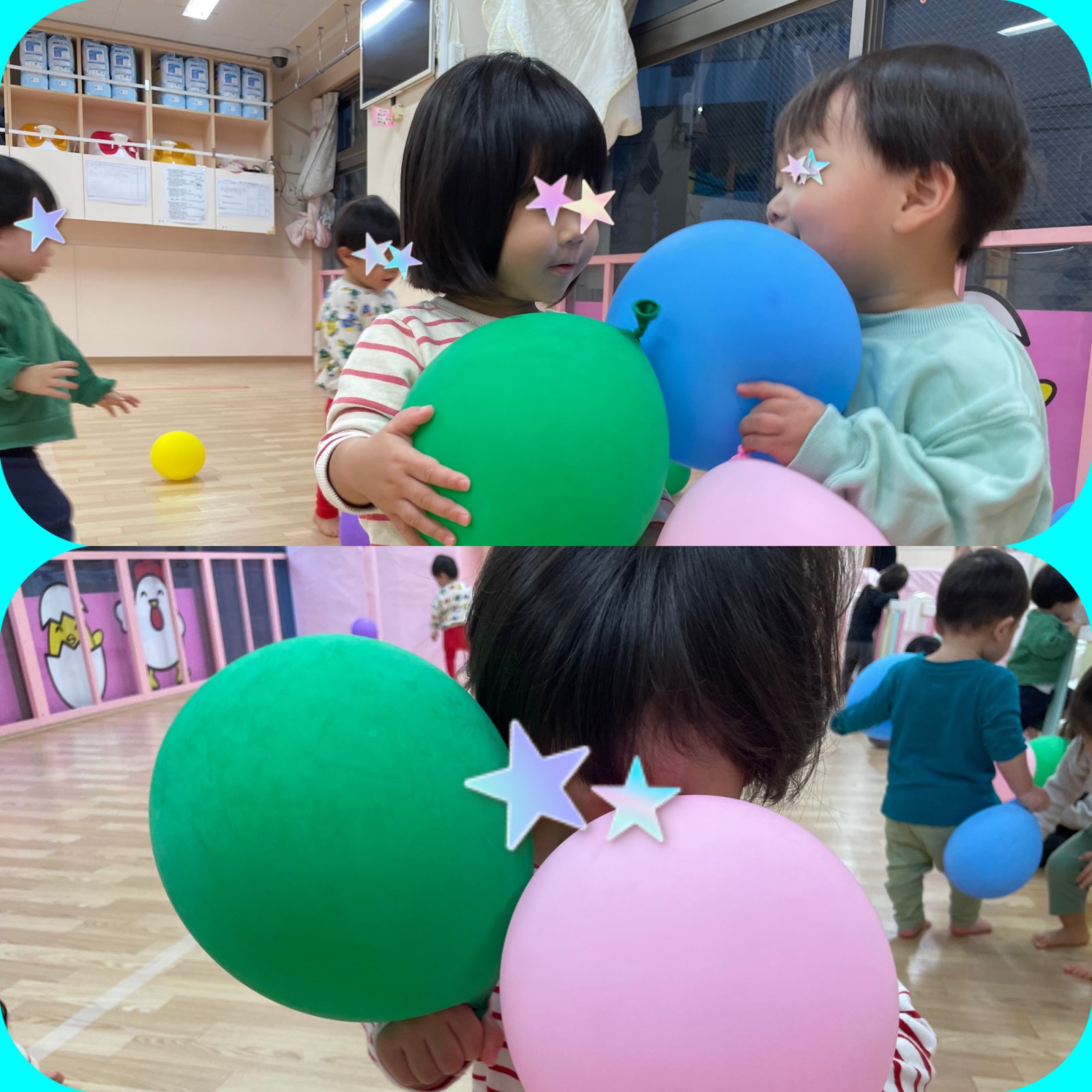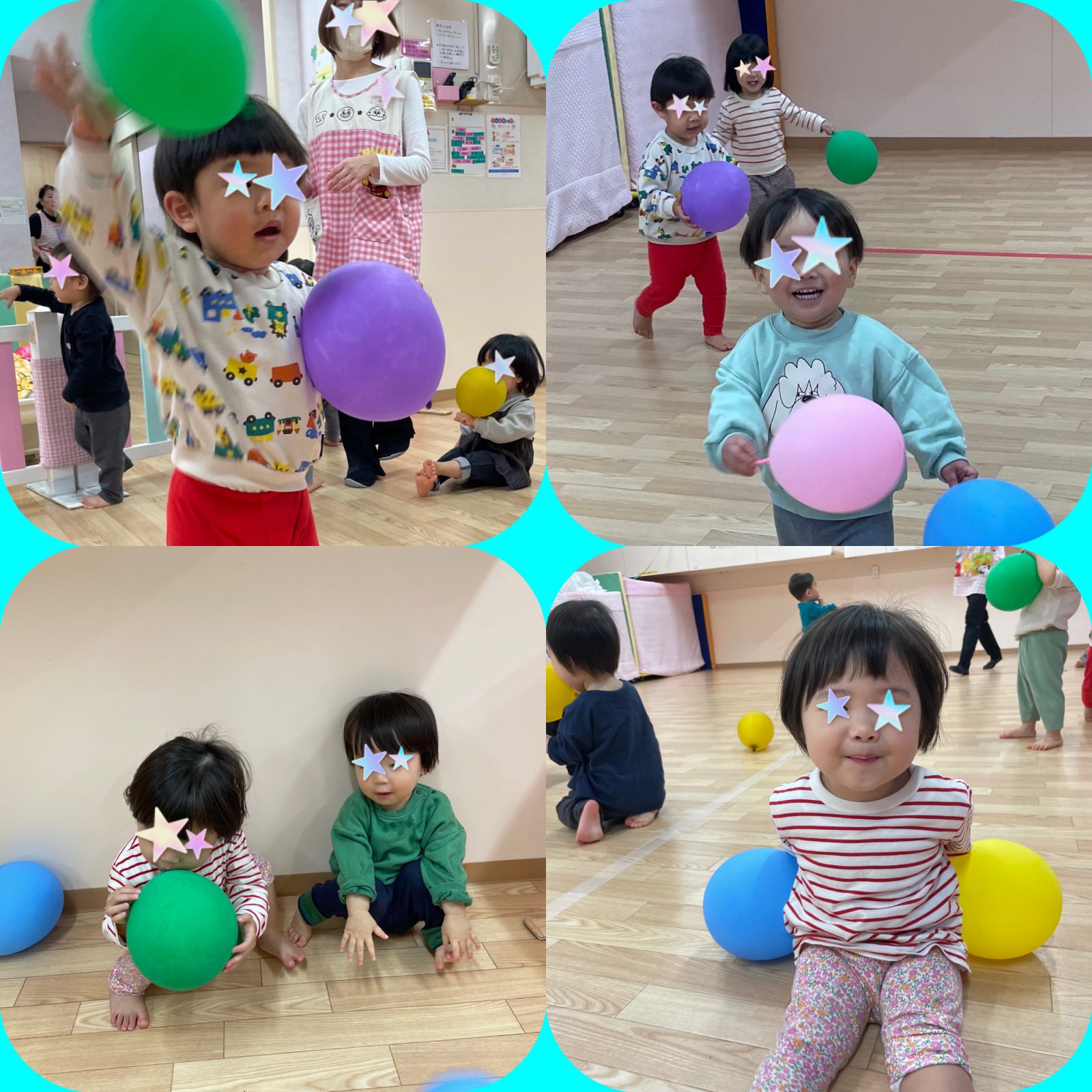 こあら組の風船遊びは、投げて取るだけではなく、