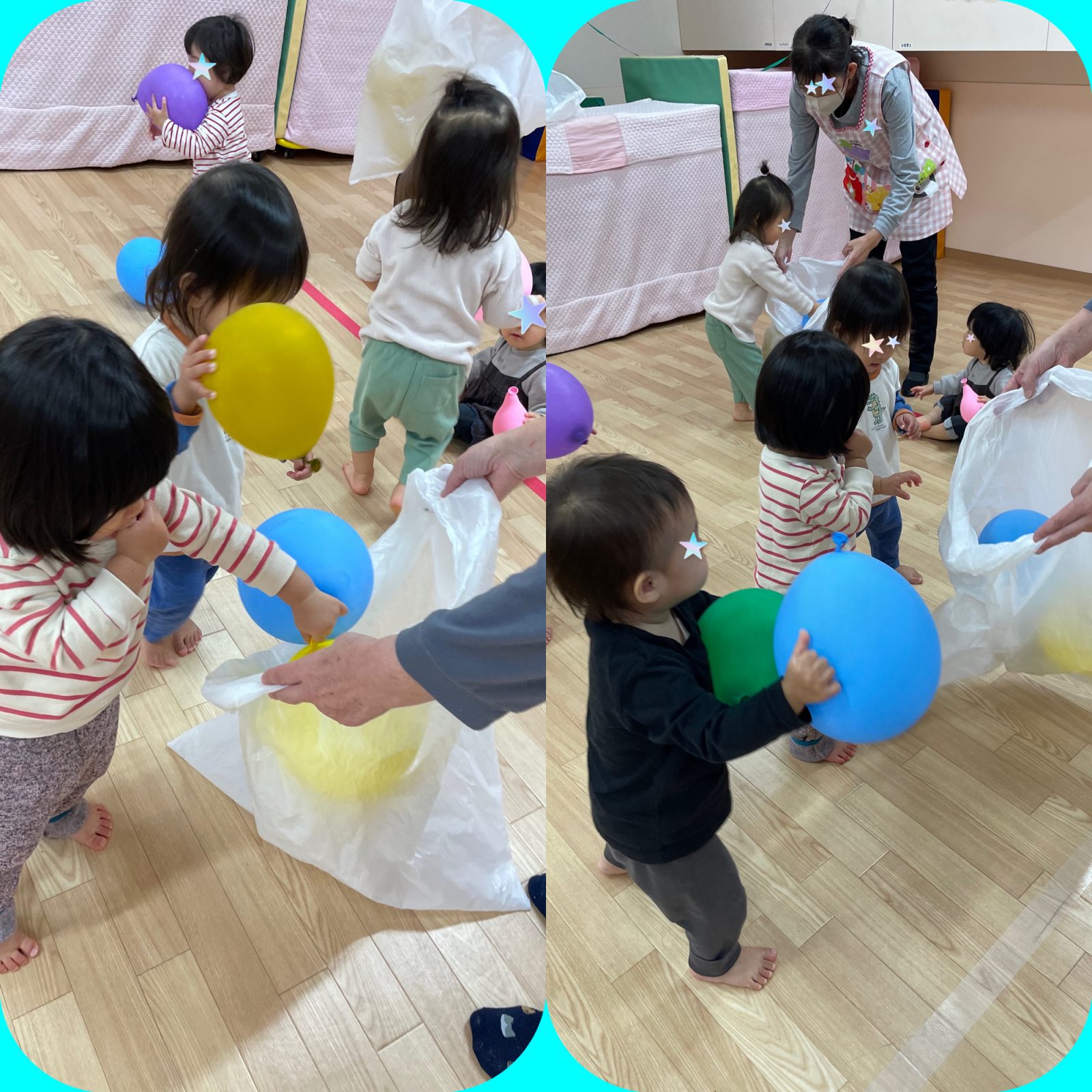 素直なみんなは、、慌てて風船を追いかけては一生懸命にお片付けをしていました。