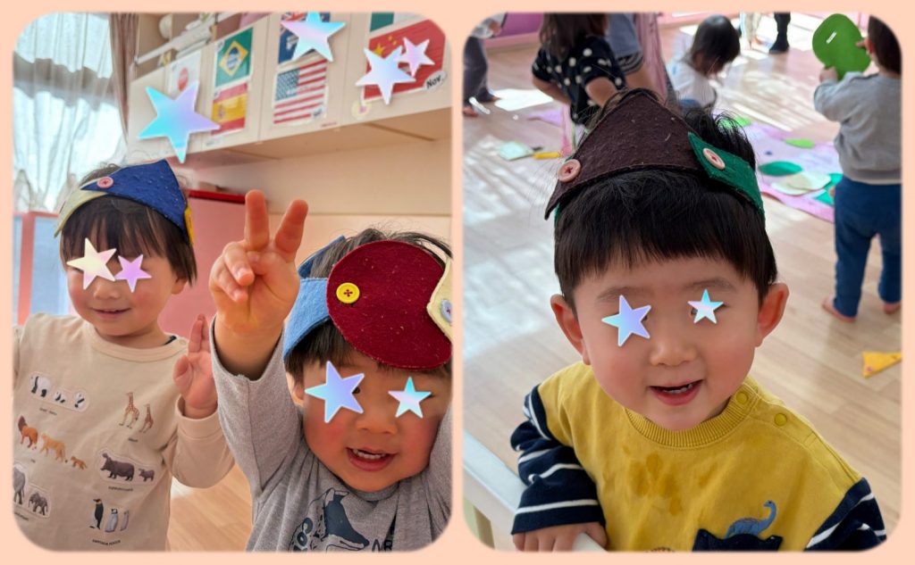 「出来たぁ〜」職員と一緒に可愛い冠を作ってみたり。