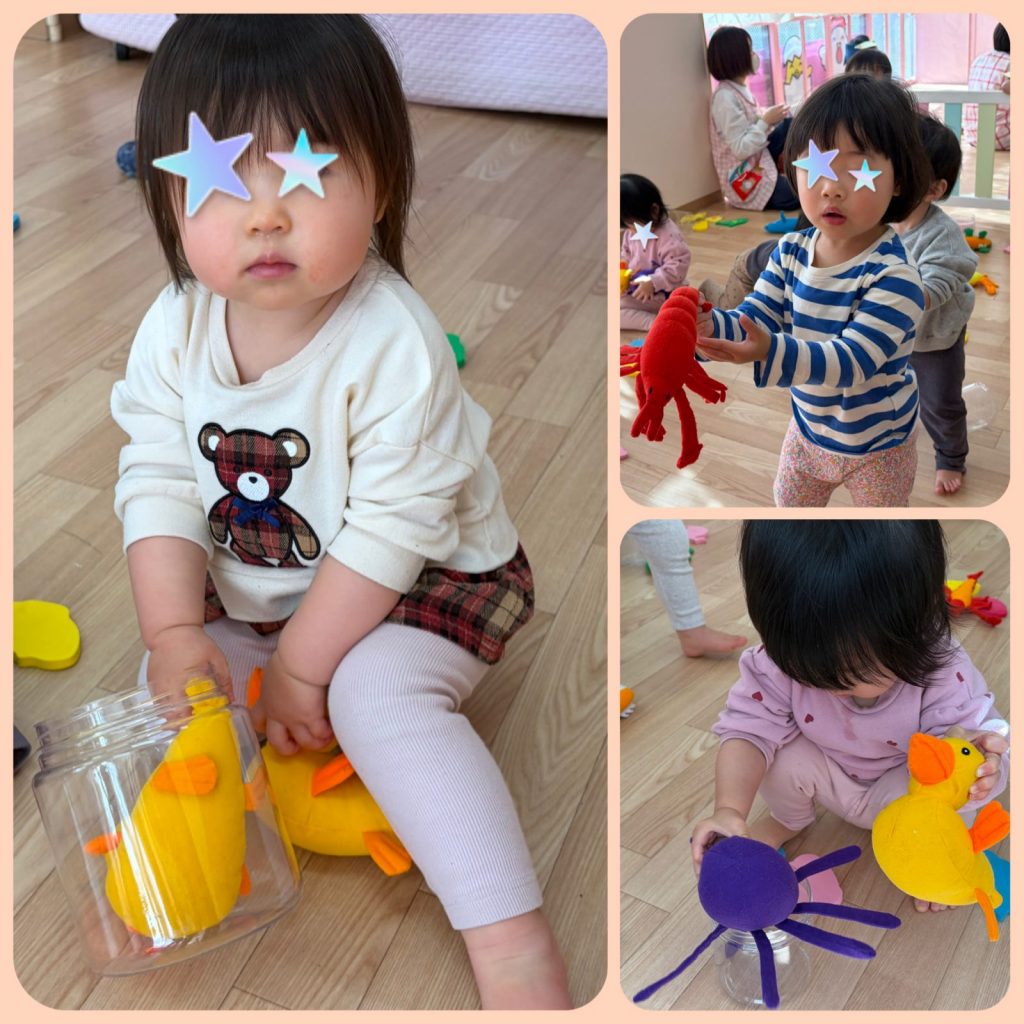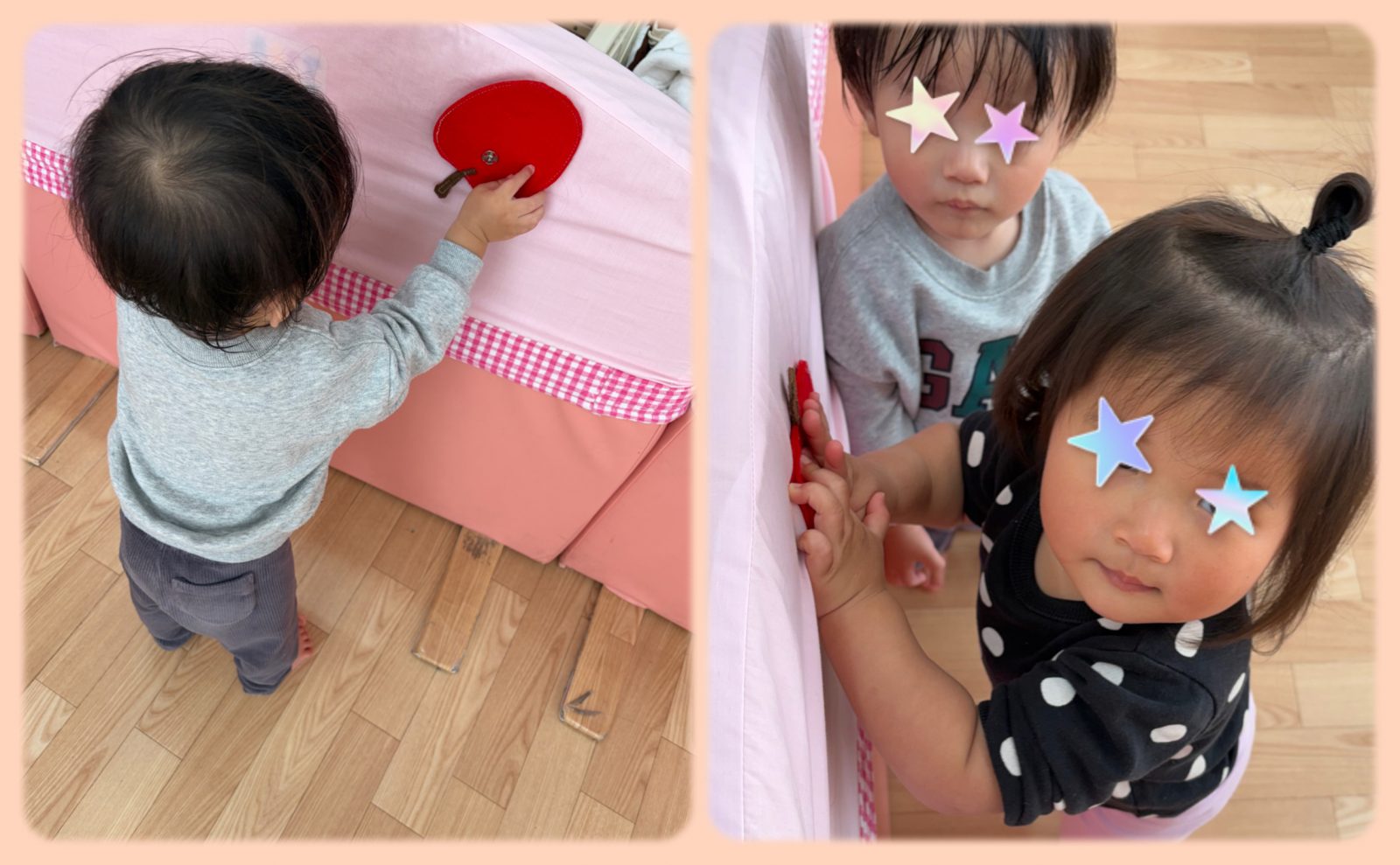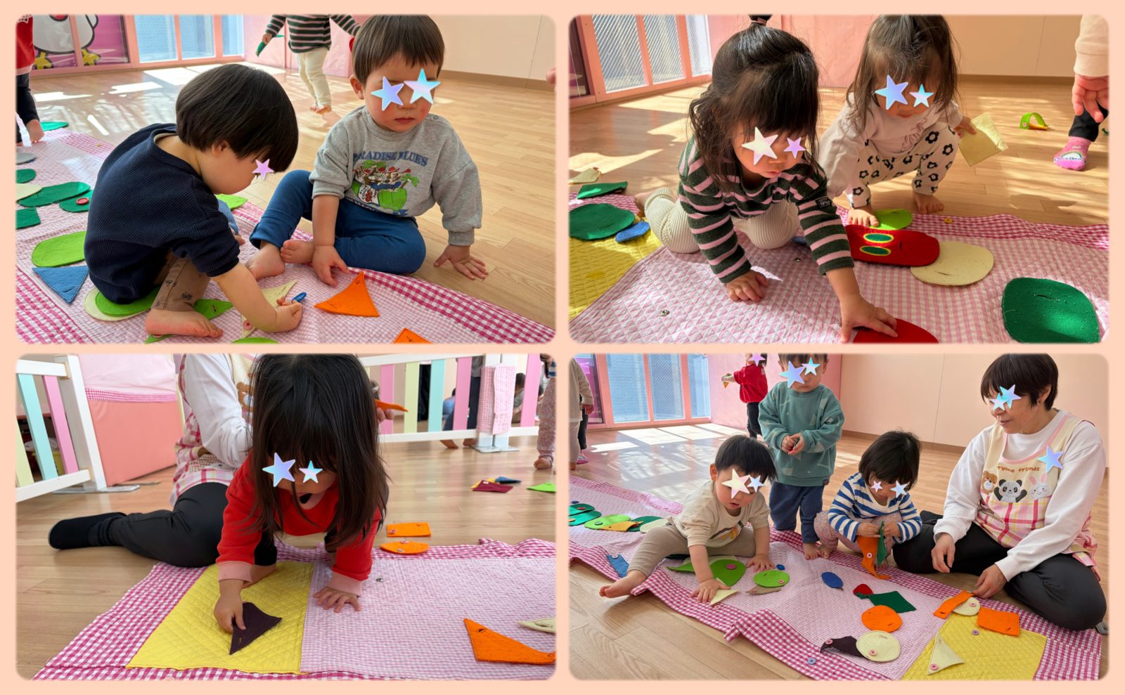 ある日のこあら組、お部屋を区切ってコーナー遊びをしました。