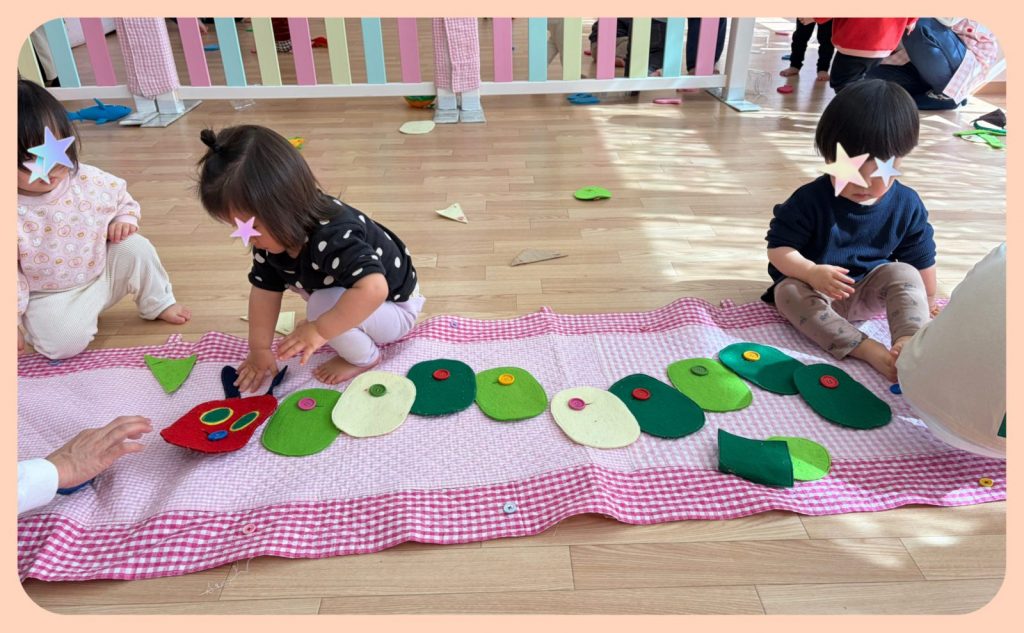「ここかな?」「ここかな?」とあおむしに乗せてみたり。