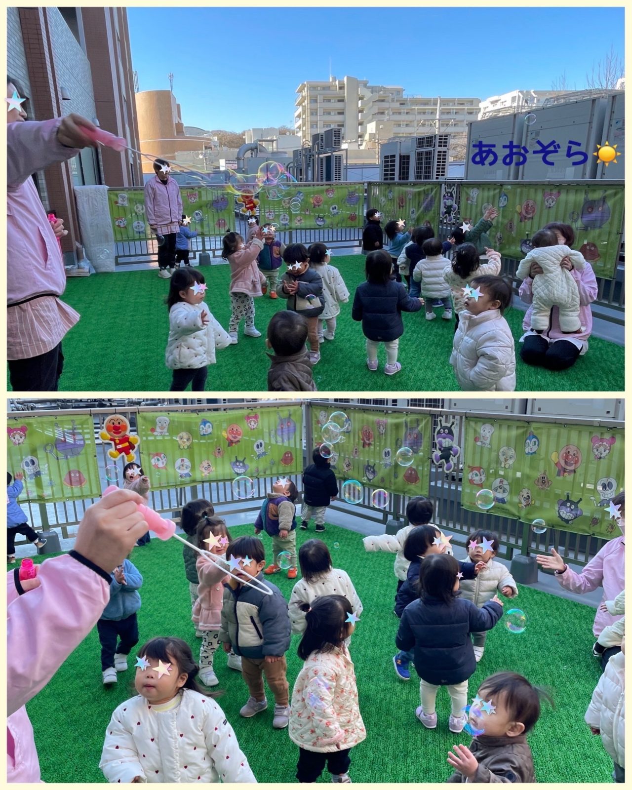 シャボン玉を追う みんなのお目々も ピカピカです✨