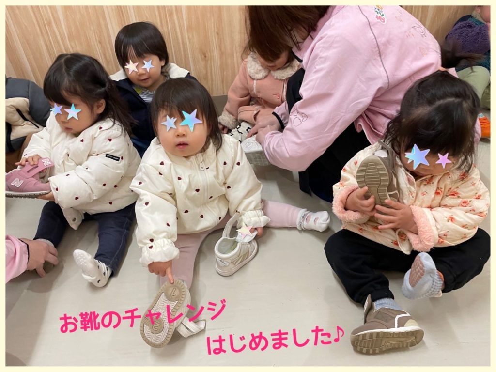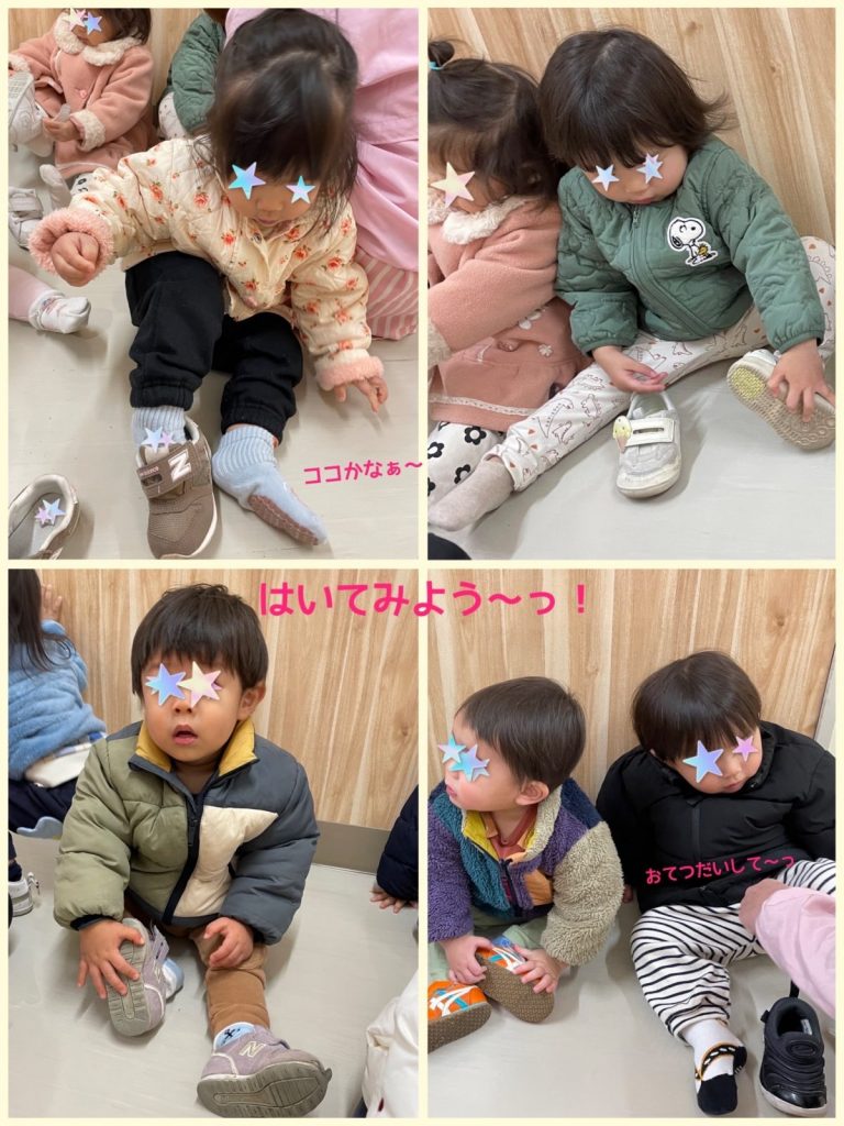 靴を自分で履く練習を始めた こあら組さん