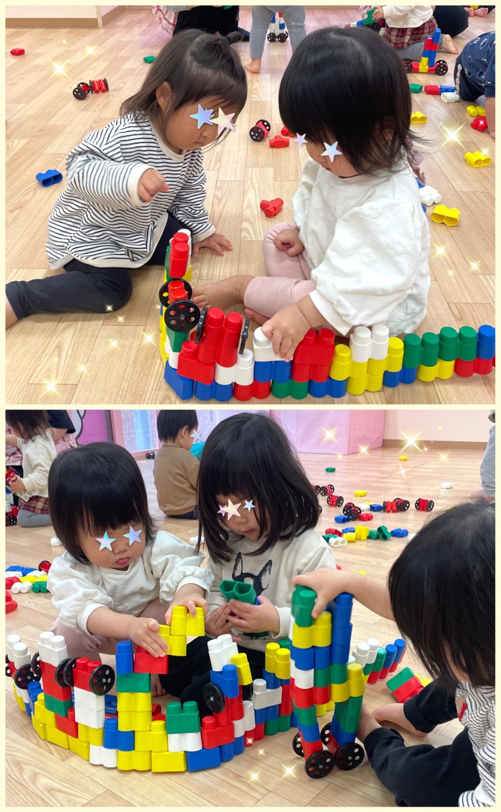 ブロックをペタペタして 一緒に大物作りをしたり