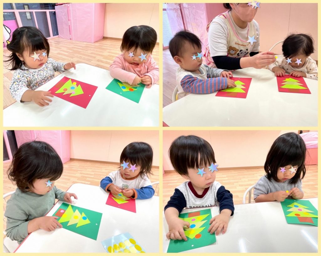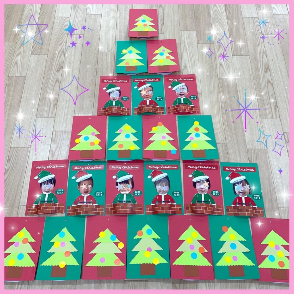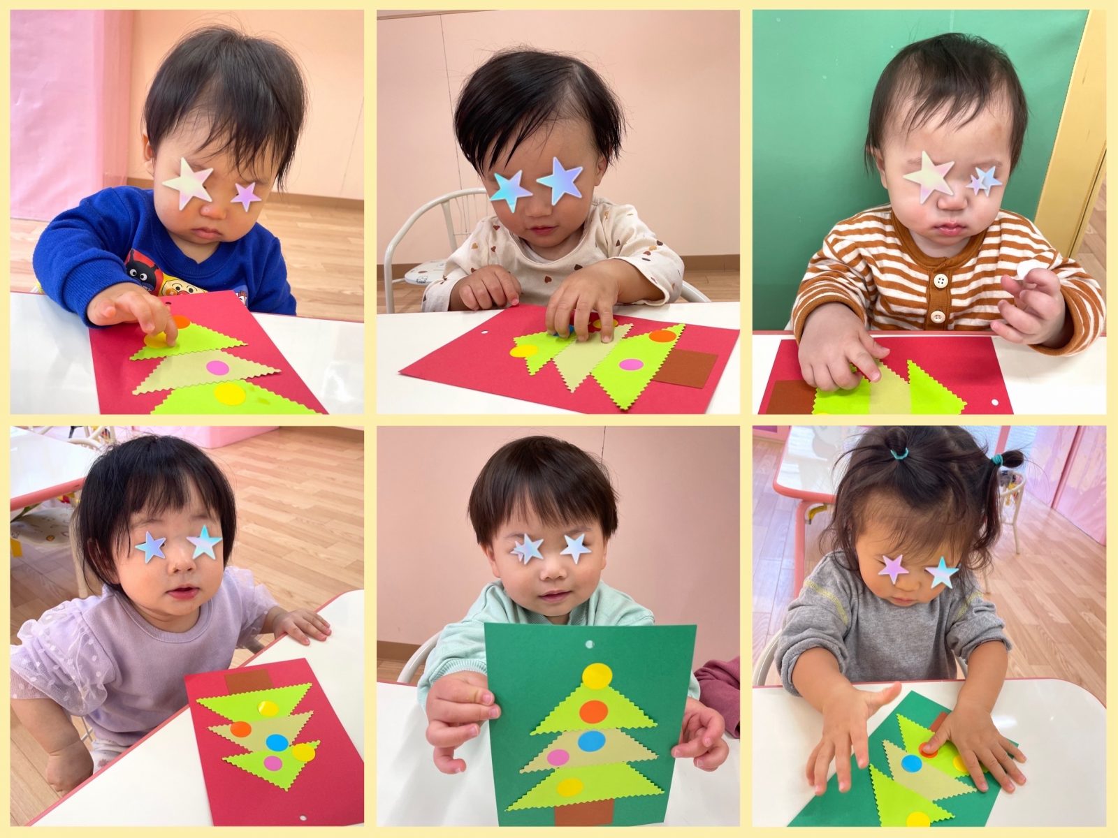 12月といえば…🎄 2025年12月2日 こあら組 12月中旬に開催される クリスマス会に向けて 日々準備を進める こあら組 まずはクリスマスカード作り シールをペタペタ貼って ツリーに飾りをつけていきます シールのぺたぺたした感触に 不思議そうにしたり ふたつの指でしっかり挟んで持ったり 貼るよりも剥がしたい!なんておともだちも 完成した世界にひとつだけの クリスマスツリー 裏面はというと… サンタに変身したみんなの笑顔写真! 煙突から入っちゃうよ〜 そして… 試行錯誤が続く 演目練習♪ このポーズはどう? こっちのポーズにする? 本番までに ポーズ決まるかしら? 決めなくちゃ! 楽しみながら練習していま〜す✨