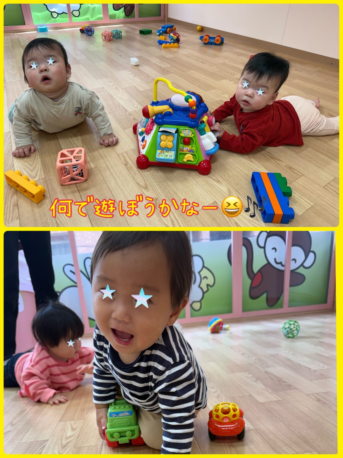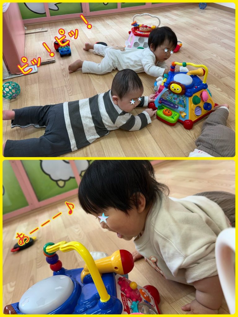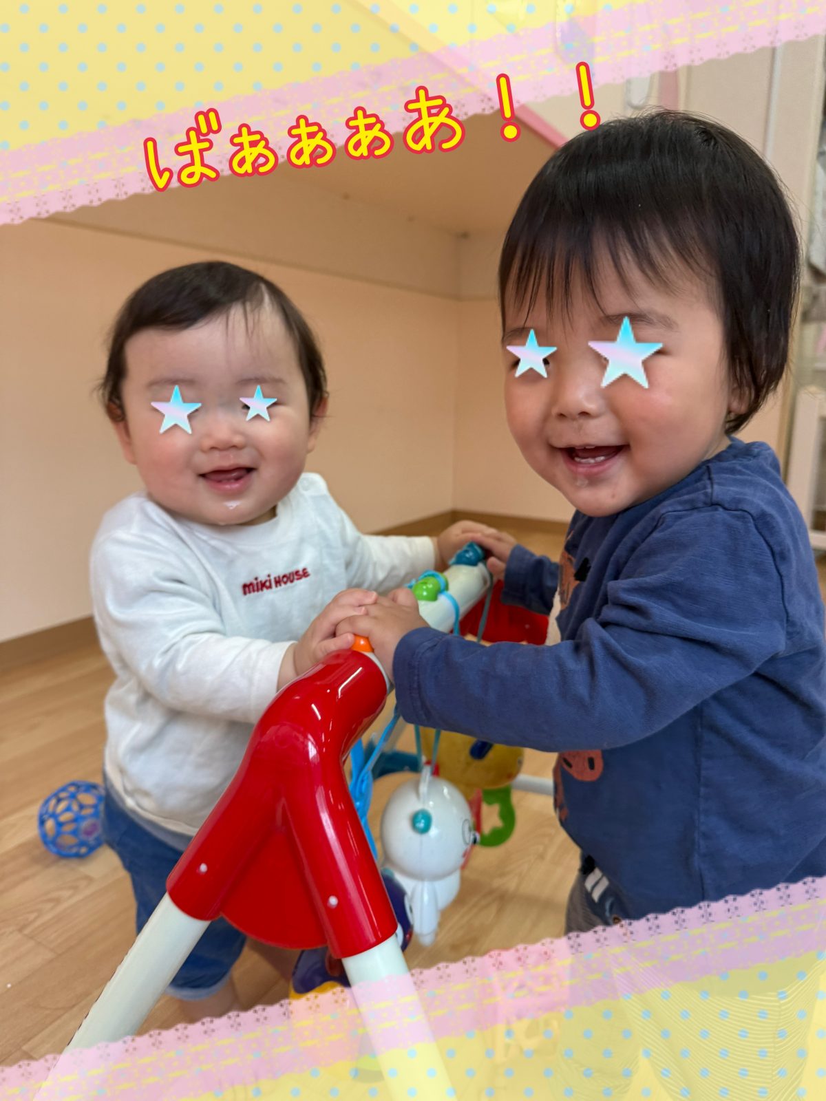 NEW★こあら組 2026年4月17日 こあら組 涙の大合唱からスタートした4月ですが 早くも中旬となり日に日に少しずつ慣れてきた こあら組さん(0歳児クラス🐨) 笑顔が見られようになりました♡ それぞれお気に入りのおもちゃを手にしたり やっぱり、、、シャカシャカ~♪ ピッ!ピッ!と音が鳴る玩具は大人気☆☆ 知育玩に付いているマイクを発見すると 『ああ~♫』と歌ってる!? お友達といない・いない・ばあ!!をし 笑い合う姿も♡♡ これからも沢山の事を経験し 毎日笑顔いっぱい楽しく過ごそうね♪