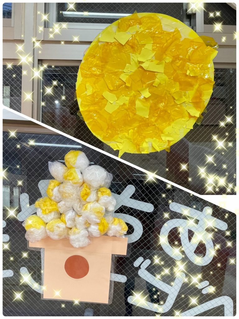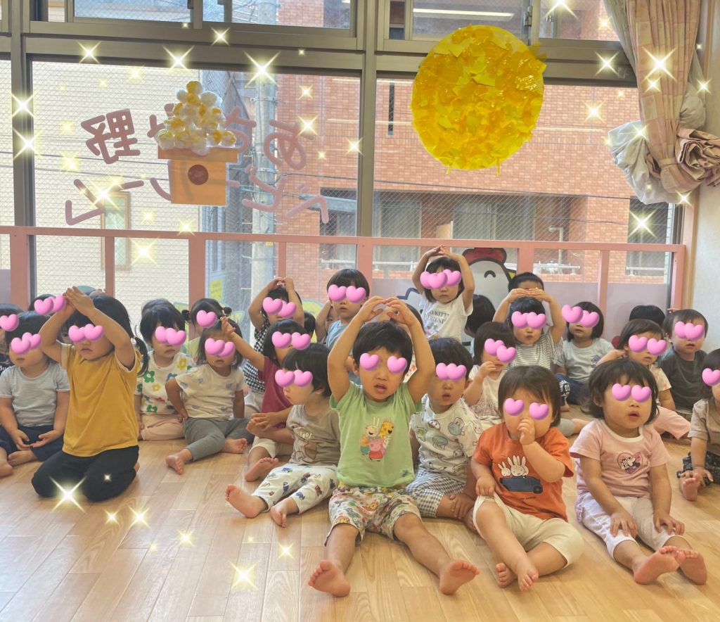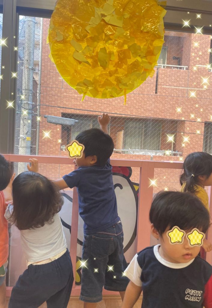 大きなお月様とお団子が優しく皆を見守っています。一足早い中秋の名月を楽しみました🌕