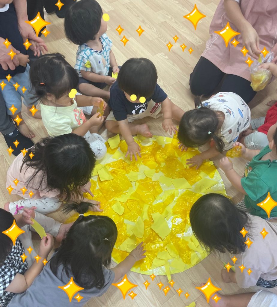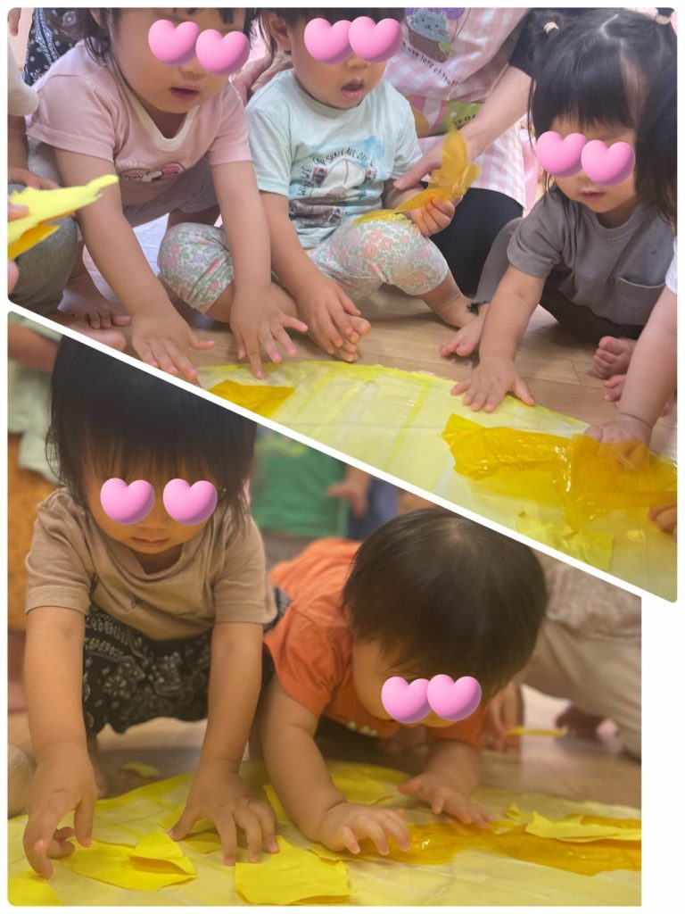 ビリビリした色紙をペタペタしてお月様を作ります🌕