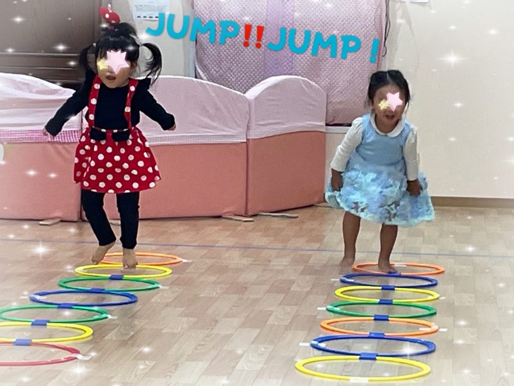 フープの中をジャンプしながら前に進んでいきます!!