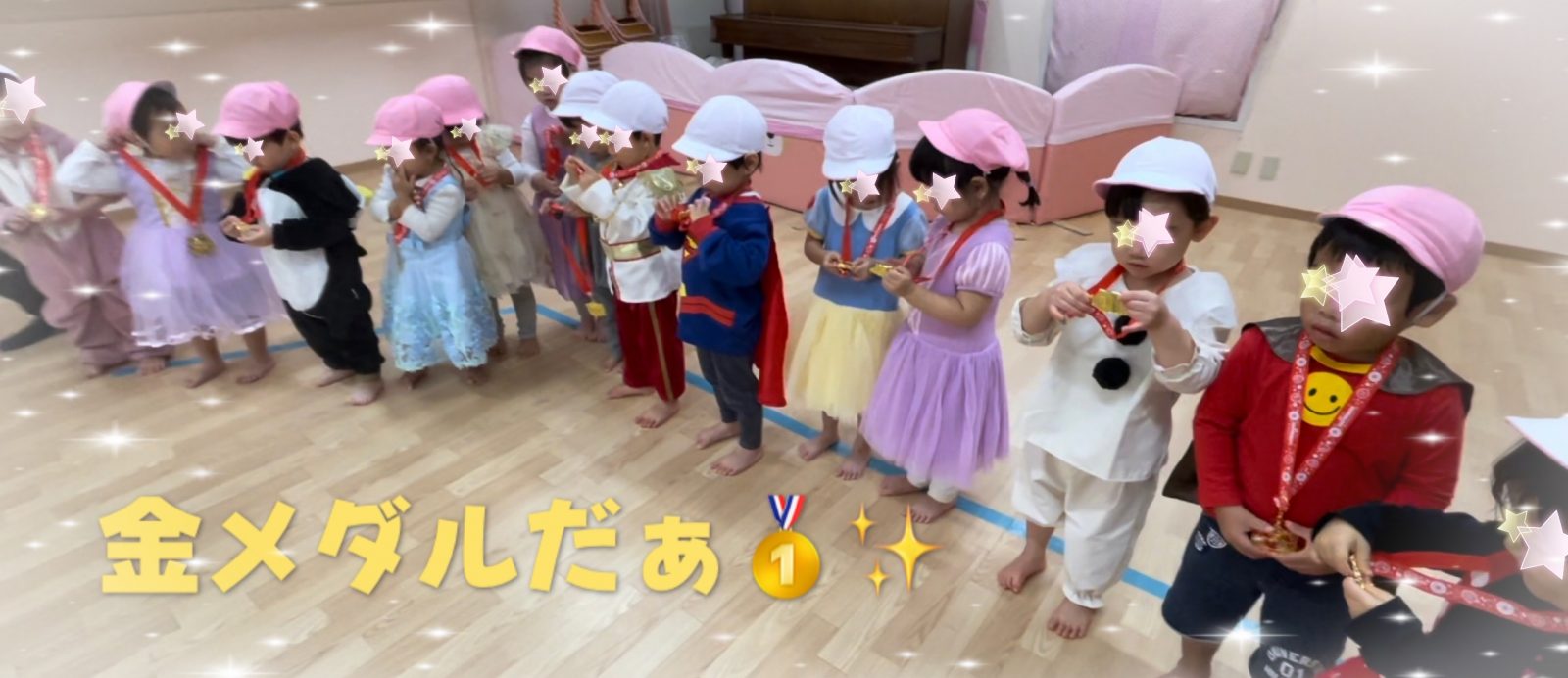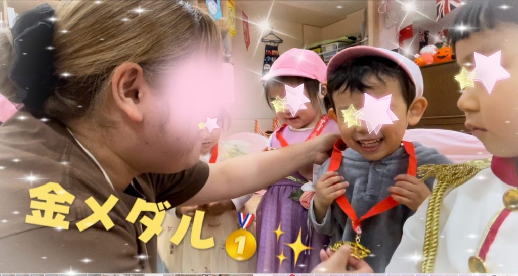 さて、閉会式では全クラスのお友だちに金メダルの贈呈です✨✨✨