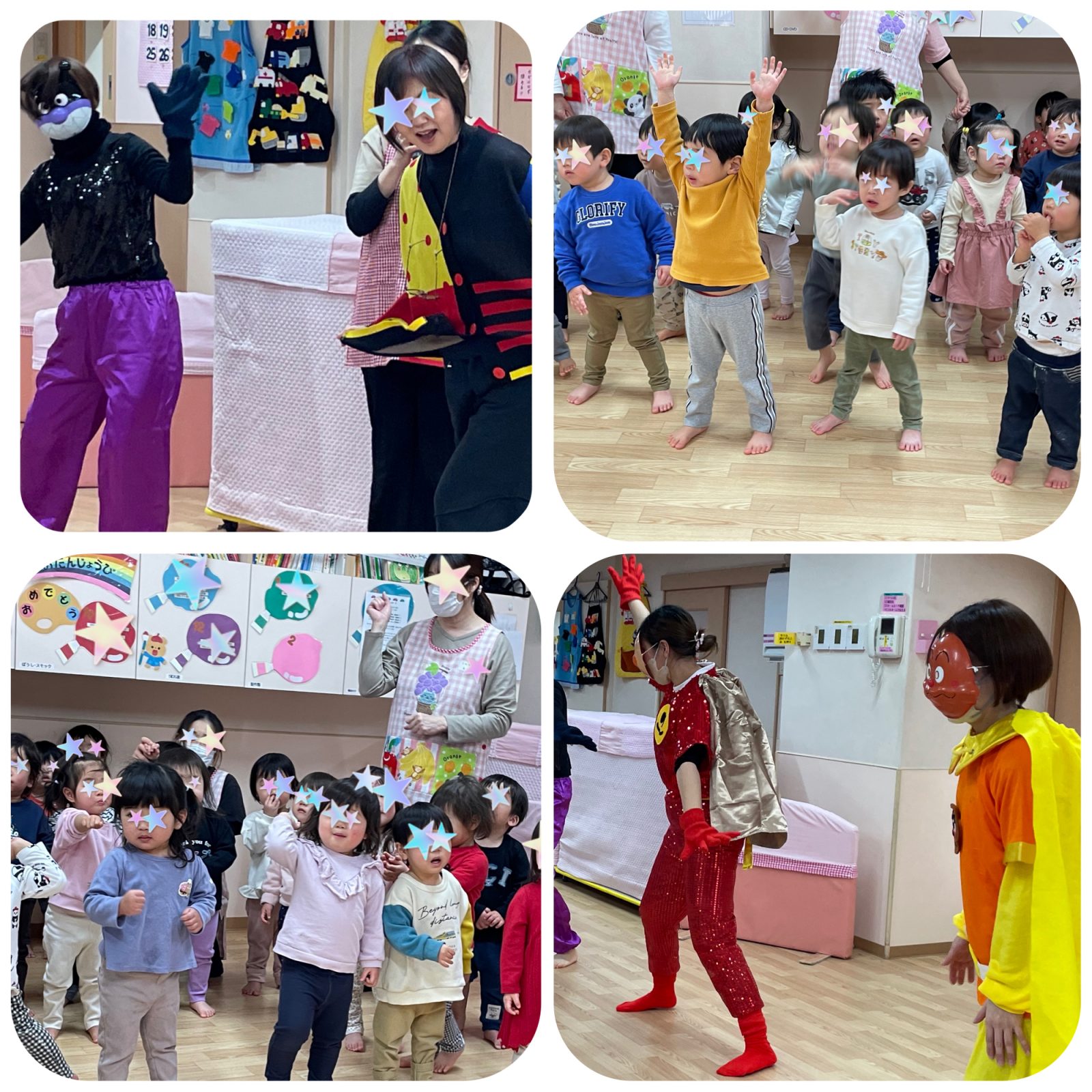 アンパンマンが帰ると、こっそり職員に『アンパンマン、〇〇先生だったね。』なんて耳元で囁くお友達もいました。