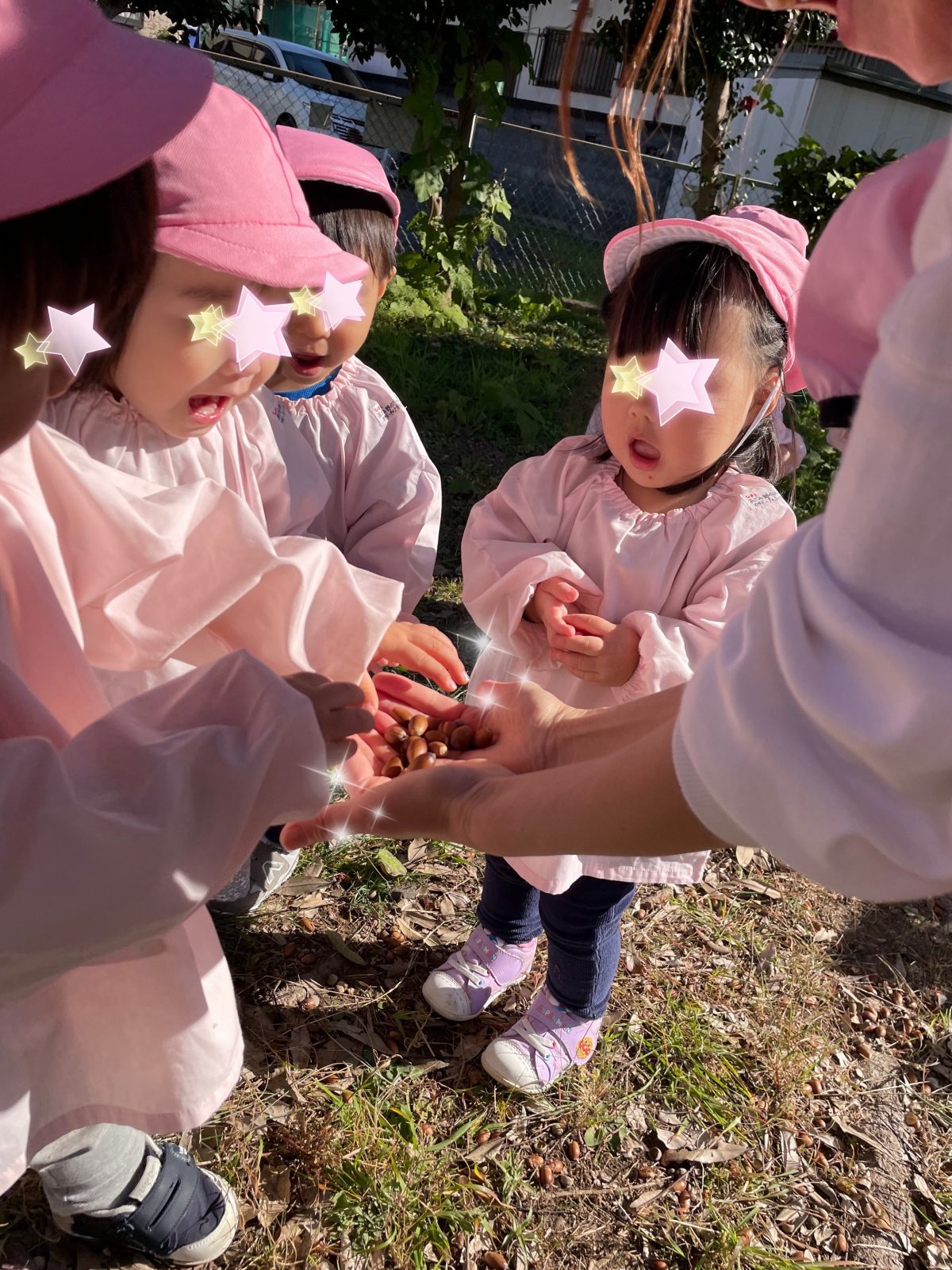 大事そうにどんぐりを持って