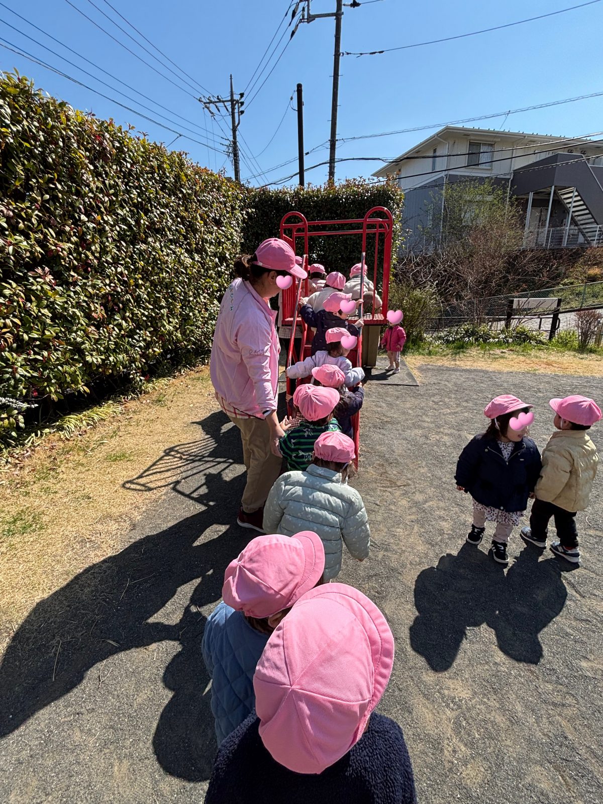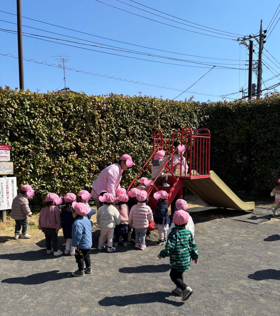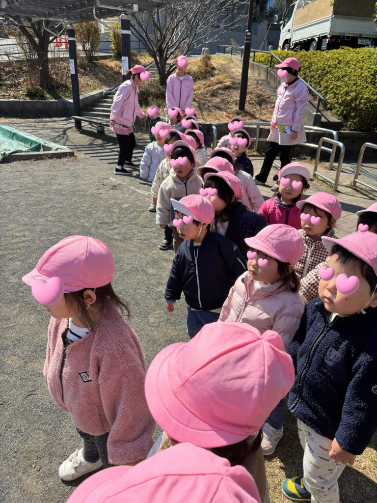「ぱんだ組になる!お兄さんお姉さんになるから頑張る!」公園に到着しても先生のお話しをしっかり聞きます!