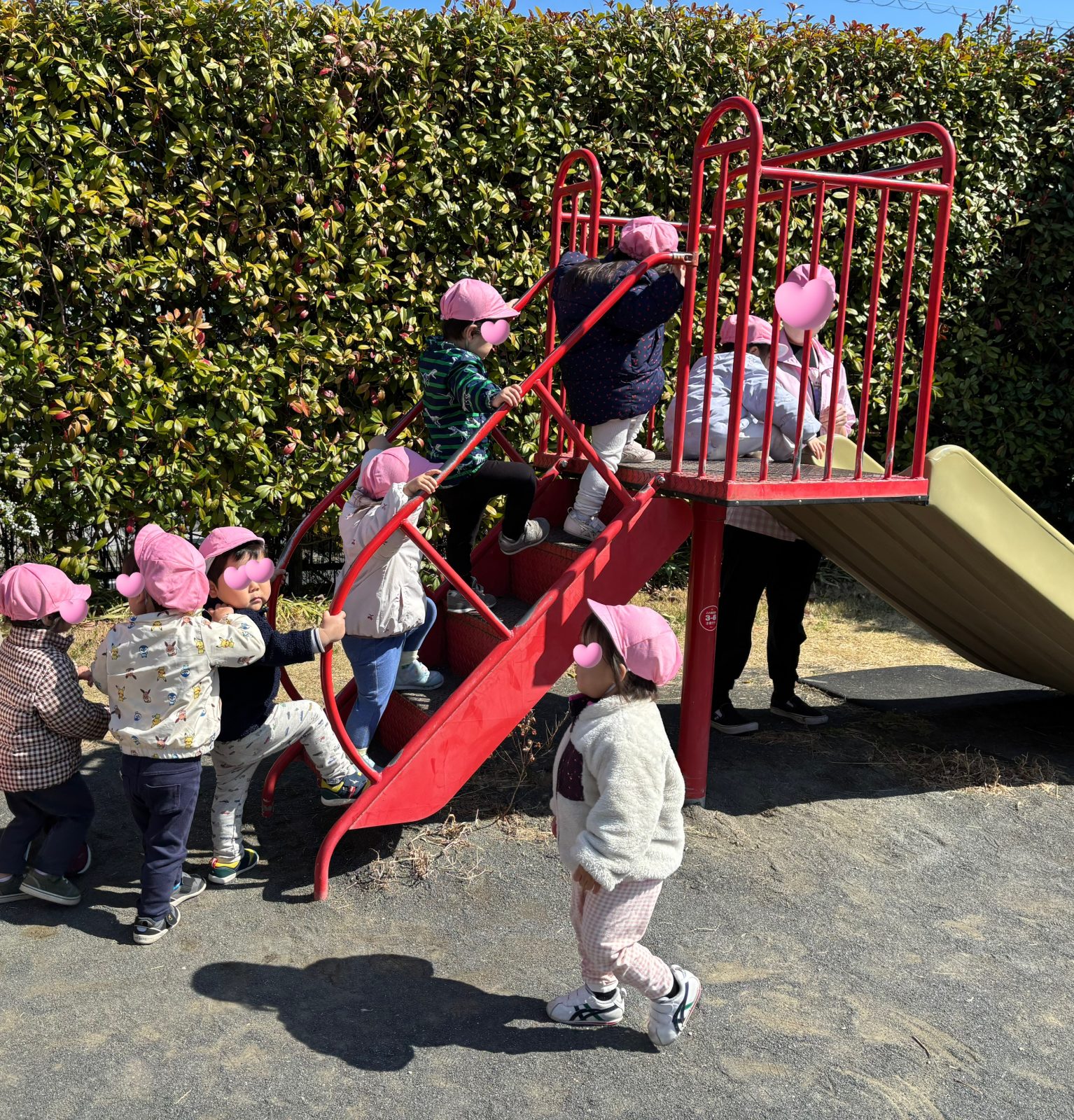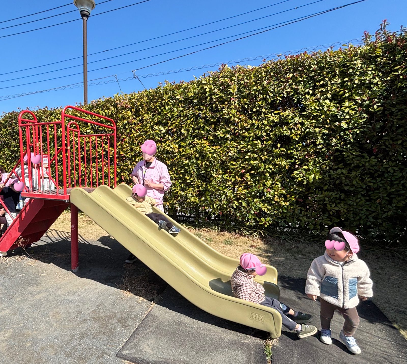 「滑り台ではお友だちと一緒に並びましょうね」