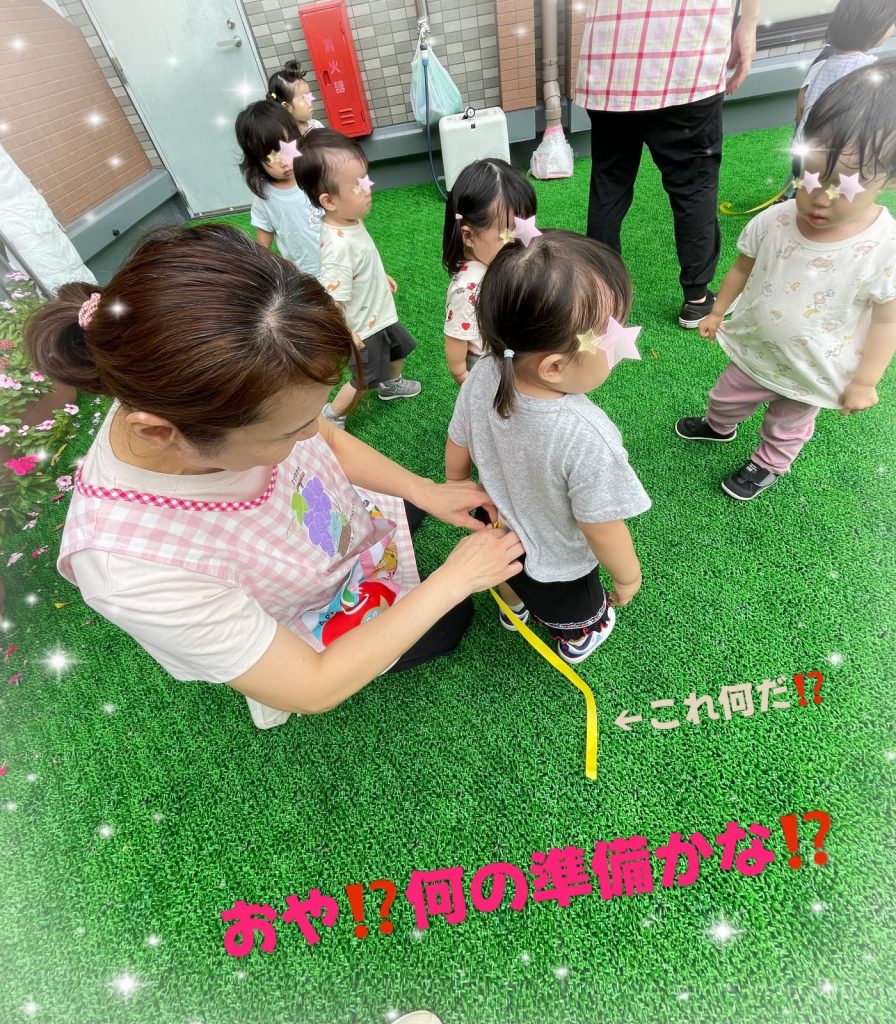 なにやら、みんなのズボンにテープをはさんでいます🫡